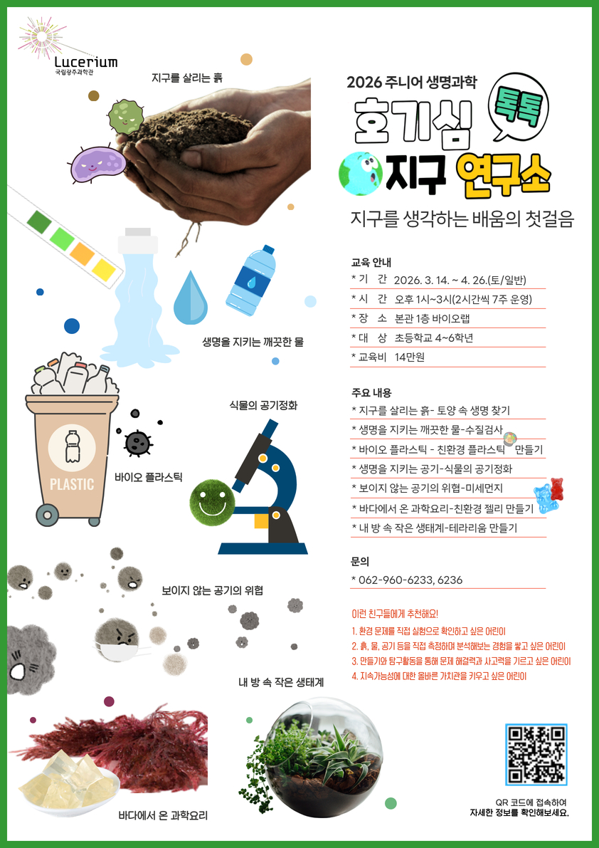 (신규 교육 안내) 주니어 생명과학 - 호기심 톡톡! 지구연구소(국립광주과학관)