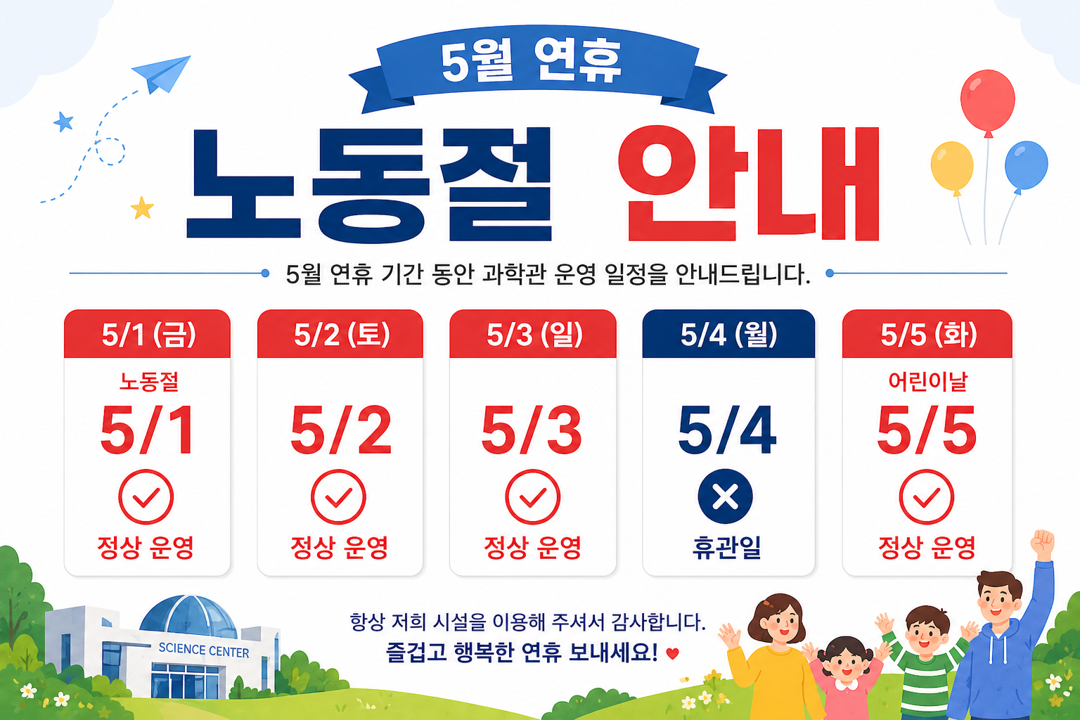 2026년 노동절 관련 장영실과학관 운영안내를 드립니다.