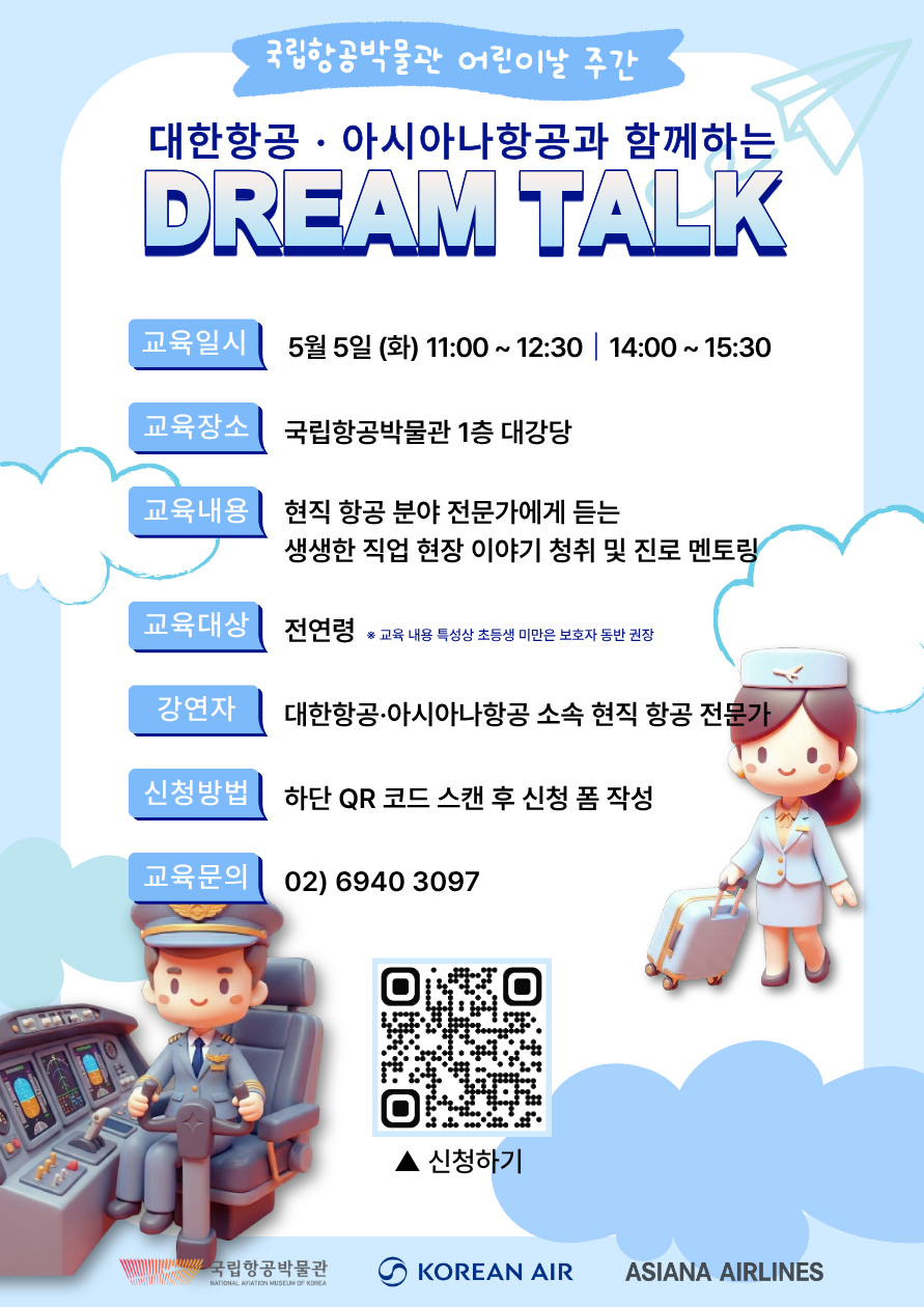 어린이날 기념 진로 특화 강연 <Dream Talk> 운영 안내(국립항공박물관)
